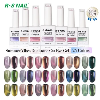 R S Nail Summer Cat Eye Gel Polish 15g Odourless Fast Curing UV/LED 24 Colors Adhesive Nail Glue 3-4 Weeks Long Lasting